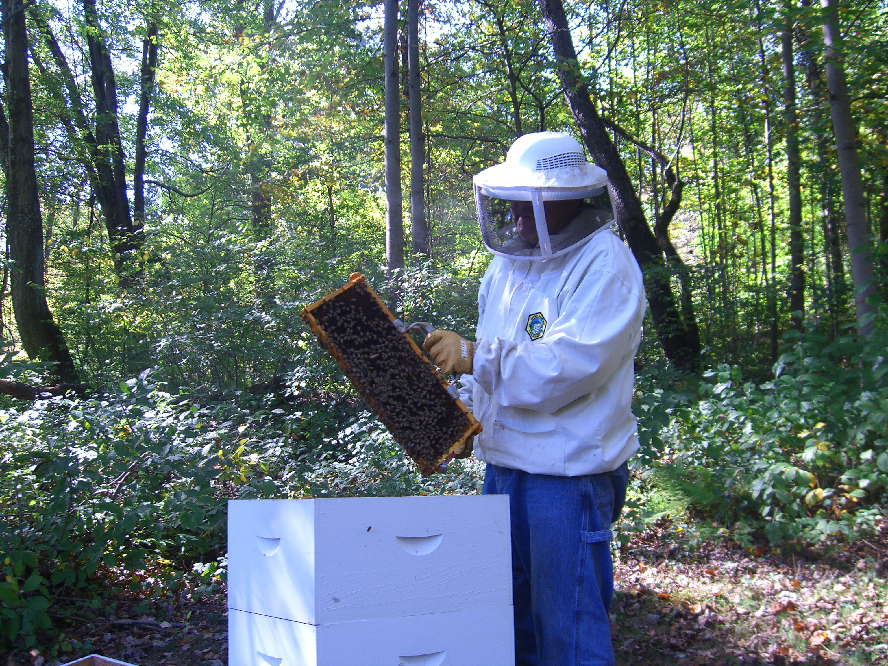 Meanwhile, John was playing with his bees. It was the perfect weather for a fall check of the hives. Alas, not too much honey. John put boards under each hive to help keep out some cold air. Later we’ll wrap the hives in tar paper to keep the bees warmer through the cold of winter.