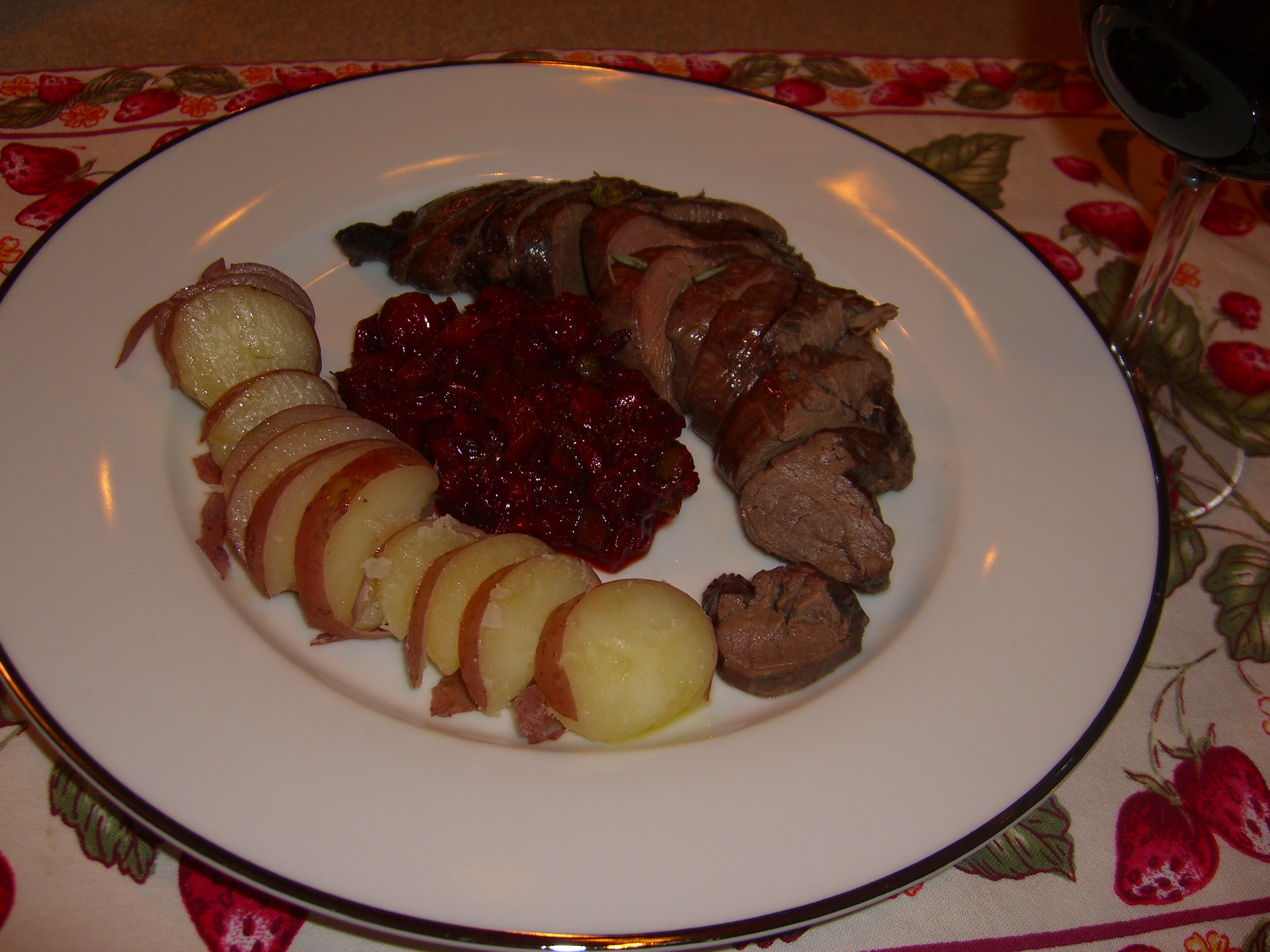 Four deer in the driveway made for a full afternoon of guy-bonding butchering while I scooted off to Tuba Christmas downtown. Today we will eat venison tenderloin with cranberry-dill sauce.