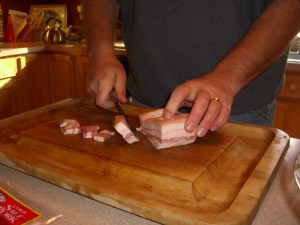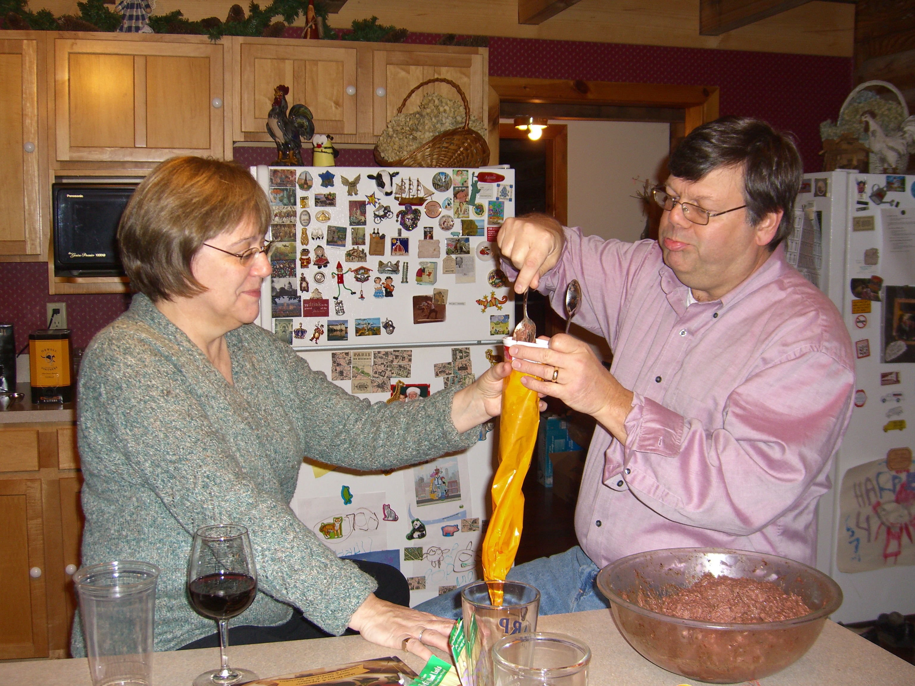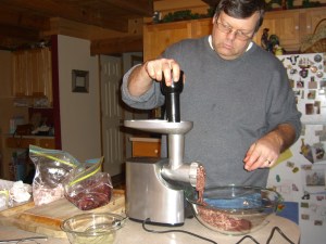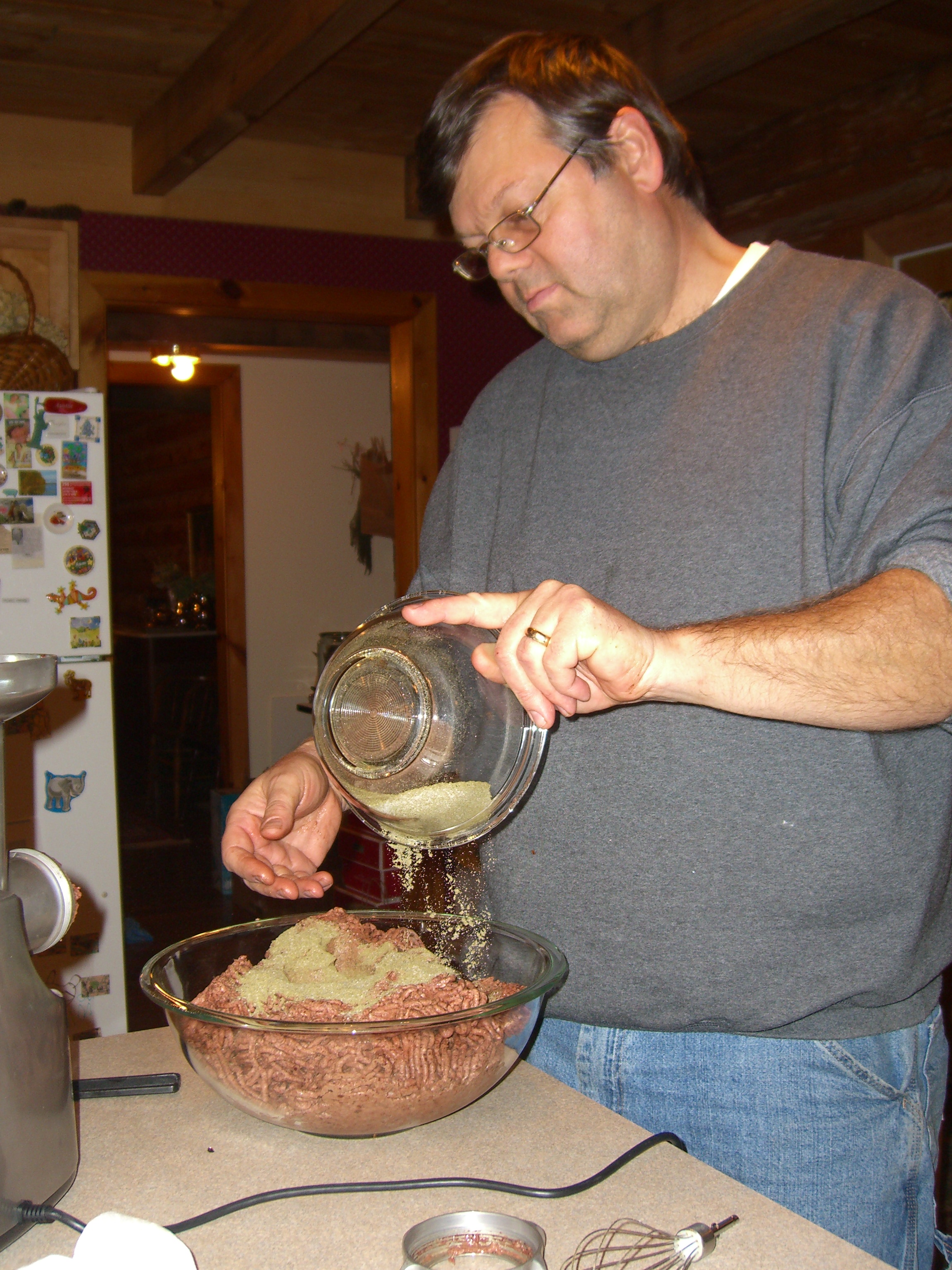 Pioneer John is making the most of his deer bounty.  Not content with mere roasts, he decided to use the organ meats (liver and heart) to make liverwurst.  For those of you shaking your heads and laughing while saying “Poor Kathy…,” it’s not really that big of a deal.  I know for a fact that some of you like giblet gravy, love making appetizers out of chicken liver, and are even known to enjoy pâté de foie gras.  Your issue is not with liverwurst; it’s with Bambi.  To that I say: better to eat Bambi than to have Bambi cause a major accident while running across I-83.