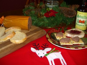 So,  compared with that, what’s a little liverwurst?  And guess what?  It looks like “real” liverwurst, smells like it, and even tastes like it (although next time John will cut back a little on the marjoram).  John enjoys his slice on saltines.  I prefer to spread it on baguette and pretend it is pâté de venaison.  Hmm, it would probably be really tasty with a dollop of cranberry-dill sauce.
