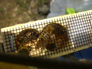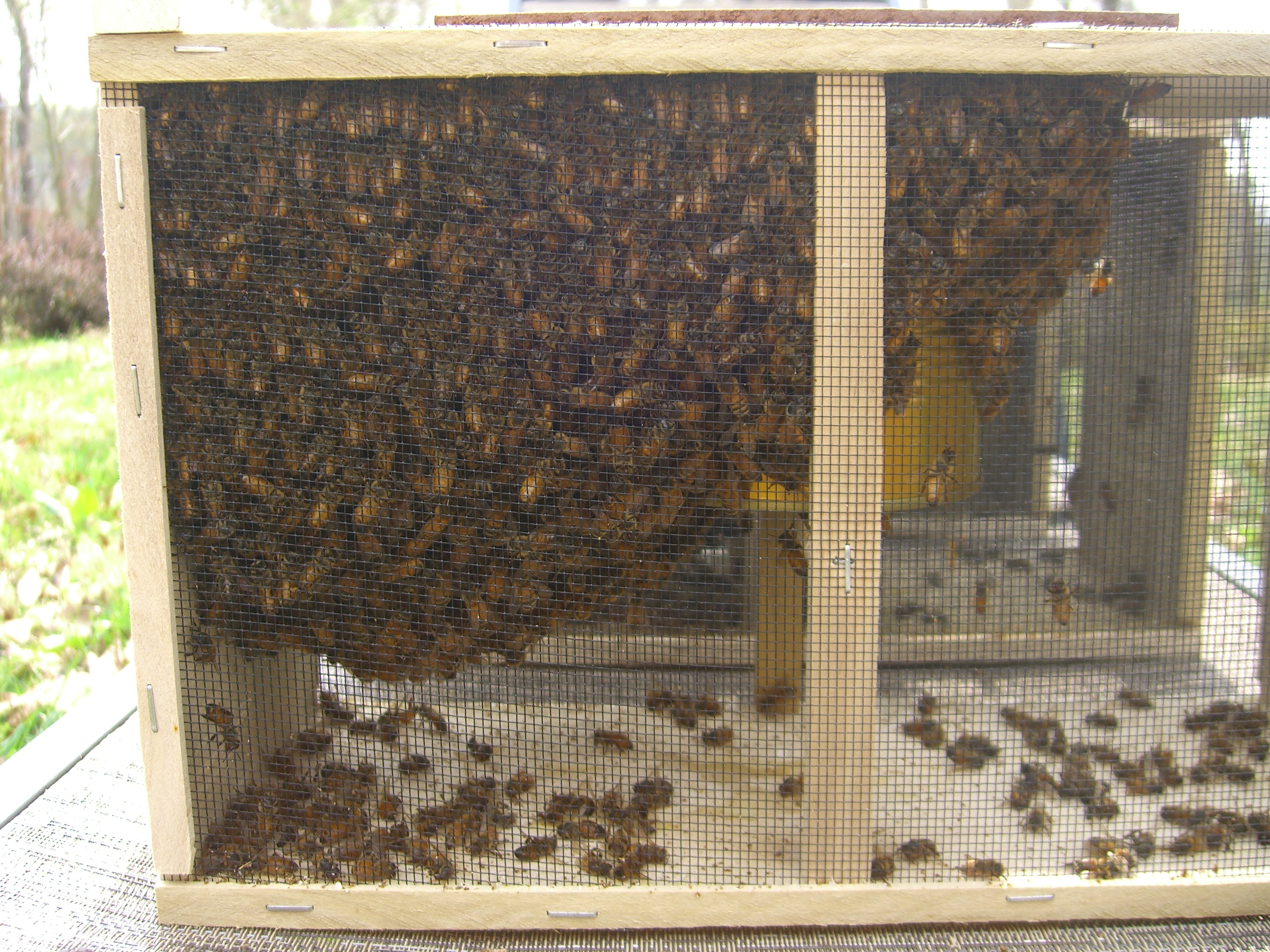Back home, the bees went into the cool, dark basement to “chill” while the hives were readied for them. The warm, sunny backyard would have gotten them too excited.