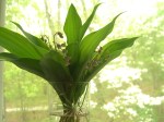 A few years ago I went foraging in the woods for free plants and dug up some lily of the valley from the woods near the old Maywood house. It’s difficult to find things that are happy with as much shade as we have, so I was glad to find something I could plant on the north side of our log home. I planted a modest line of flowers in the periwinkle bed and hoped for a clump to thrive. Within a couple of years the rhizomes were running all over the place and competing with the periwinkle–no small feat! Thinking I’d just relocate them, I grabbed a shovel to dig them up. Those rhizomes are tough little buggers! I ran upstairs to the computer and googled “Lily of the valley, invasive plant.” Oh la la. Or as they say in France when it’s a real catastrophe: oh la la la la la la.