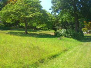 Now, Rheta had phenomenal gardening skills, particularly with irises, but she did not know that zoysia grass always turns crispy brown at the end of summer, far in advance of the other types of lawn grass. But it is thick and tough and can endure all sorts of difficult conditions. And those two little zoysia plugs did. They came back the next year and thrived. Twenty years later they had filled in the yard. Forty years later they were spreading down the hill. Sixty years later they are taking over the field. They remind me of the Shel Silverstein poem “Sarah Cynthia Sylvia Stout Would Not Take the Garbage Out”: the (zoysia) reached across the state, from New York to the Golden Gate. And there, in the (zoysia) she did hate, (the lawnmower) met an awful fate.