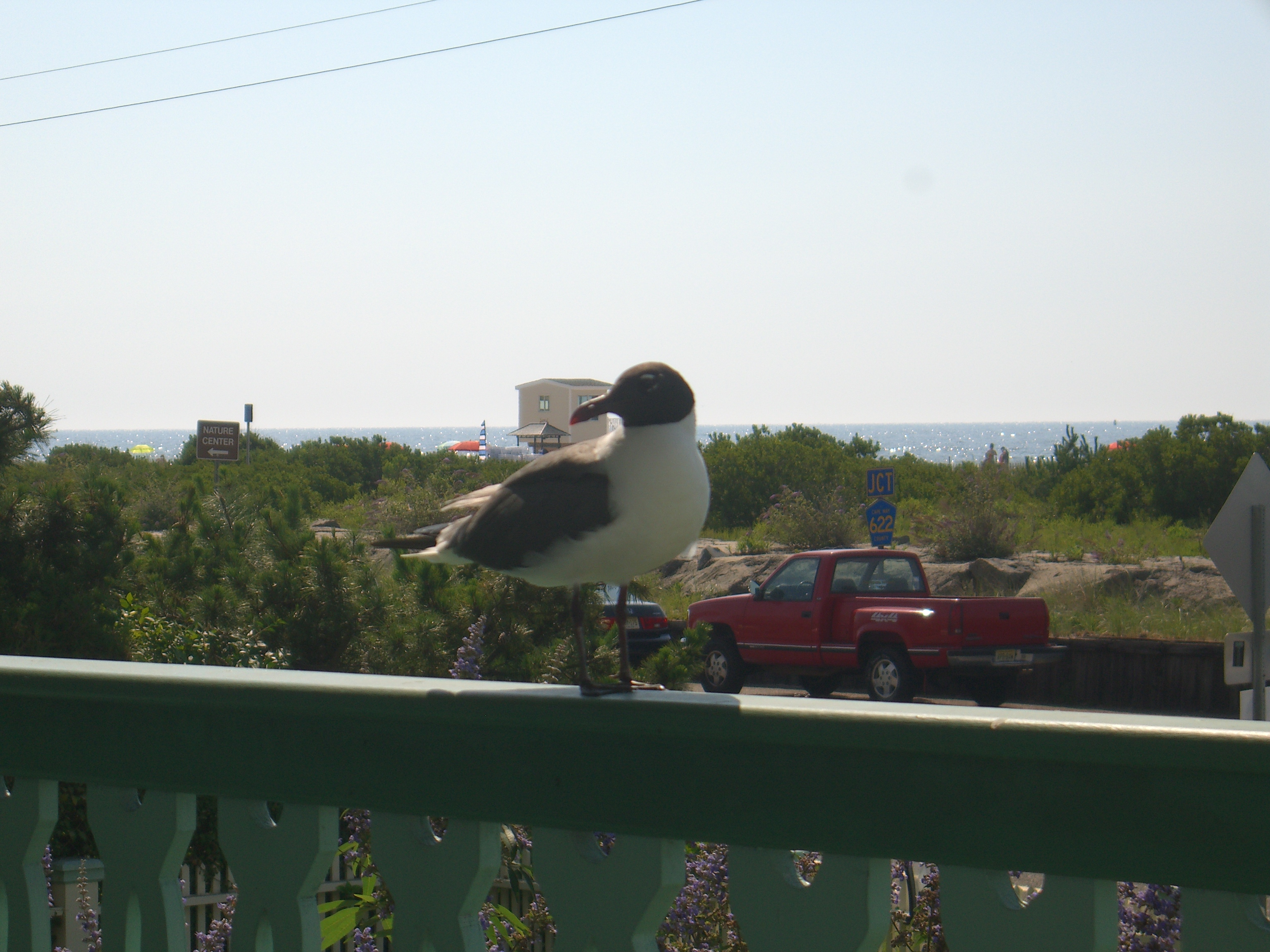 One morning a gull perched on the railing of our ocean-front porch. We were eating breakfast–eggs, bacon, English muffins. He clearly wanted some and was willing to patiently wait for an unguarded plate. My mother was so impressed with his patience that she wanted to reward him with a piece of muffin. Was she crazy? Did she want that bird there every morning? She grew up at the shore. She knows that a gull will steal the food right out of your hand if you’re not careful. After sitting there long enough for me to take a bazillion photos of him, he took off. Without breakfast.