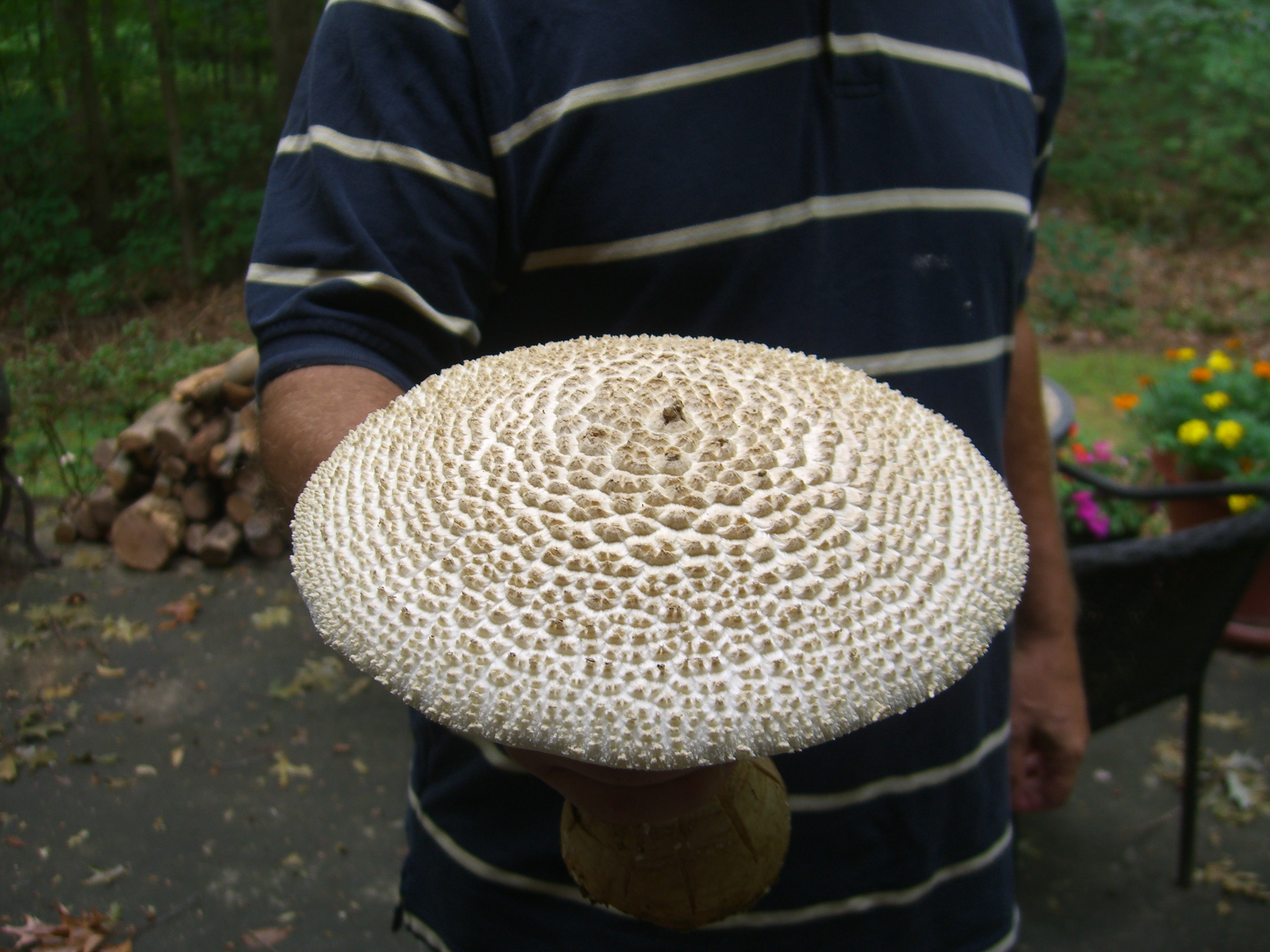 Last week we had enormous mutant mushrooms growing in the yard.  Last night I came home to the biggest caterpillar I have ever seen in my life.  I’m used to seeing bugs and critters, but this thing is creeping me out.  Harper and John discovered it on a  volunteer tomato plant in the yard, where it was voraciously devouring the green tomatoes.  (The plant, being a volunteer, was a late bloomer.  Lucky for this caterpillar, who happens to eat only the green ones.)