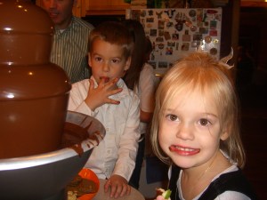 A chocolate fountain really adds “wow” factor to a party. We’ve included a chocolate fountain in our holiday parties for several years now. If you acknowledge up front that the massive amounts of chocolate are mostly going to be tossed out and that you ought to have an empty dishwasher when you put chocolate-coated parts in it to be cleaned, then you can enjoy the extravagant fun of serving a fountain of chocolate to your guests.