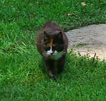 Blizzards came. We endured the double whammy Snow-mageddon. Winds roared. Hurricanes blew through. The cat stayed outdoors. We fixed a warm box for her on the porch, but that was the closest she got to the family room. She would sit by the glass door with either a pathetic look (at John) or an evil glare (at me). But she did not come in. She got older and hardier and she would not die. Spite was keeping her alive. About a week before she died, it was snowing. John watched her saunter out from under the cabin and deliberately stand in the yard until she was covered with snow. Then and only then, did she come up on the porch and give a glare that announced, “Do you see this snow on my back?”