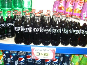 The abundance of Egyptian artifacts at the British museum comes in second to the abundance of Arab-speaking residents in the Shepherd’s Bush area of London where daughter and son-in-law live. Many shoppers in the local open air market wear burkas. Kristin is just as likely to visit an Irish butcher as a Polish butcher as a Halal butcher. We stopped at a small grocery on Wednesday and had no trouble with the produce–an eggplant is an eggplant no matter what your language calls it. The boxed goods, however, had us using all sorts of context clues to guess the product. Was that a bag of cat food or dishwasher detergent? The labeling was all in Arabic. Kristin and I put our two brain cells together and figured out that the circles represented bubbles, so it was a cleaning product. But what kind? Oh…….there is a shirt on the label. It must be laundry machine soap. We bought some Coca-Cola because the bottles were in Arabic and it was made with sugar, not corn syrup. We haven’t drunk it yet. We mostly just wanted the bottles.