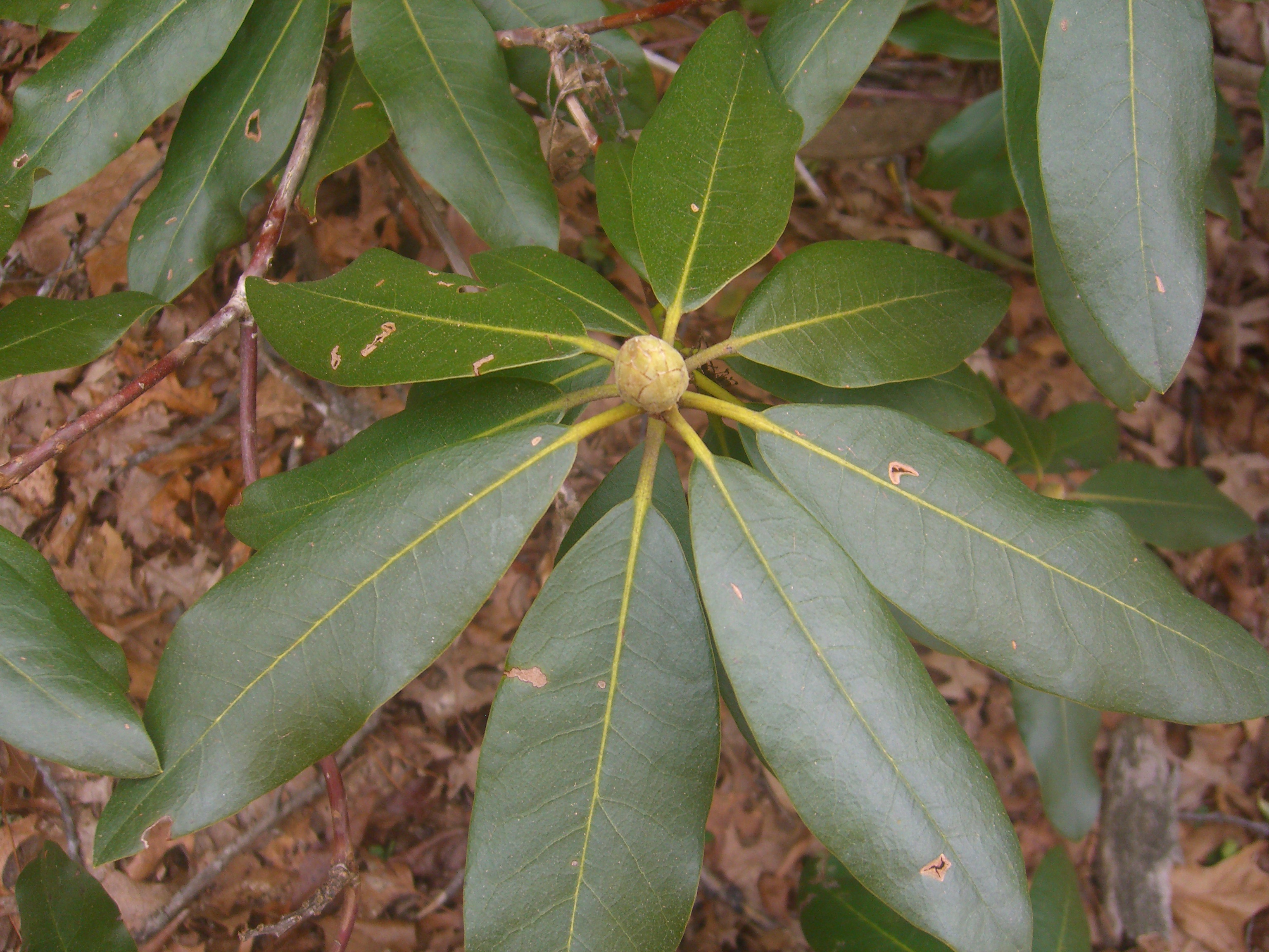 Rhododendron leaves are green. They are always green. Here they sit with buds waiting for spring. Good ol’ rhododendron. Always there. Oh, now I wish I had taken their picture in the bitter cold of an ice storm when their leaves were curled in on themselves. They looked miserable then. And now I take for granted the buds that will offer glorious red blooms in May.