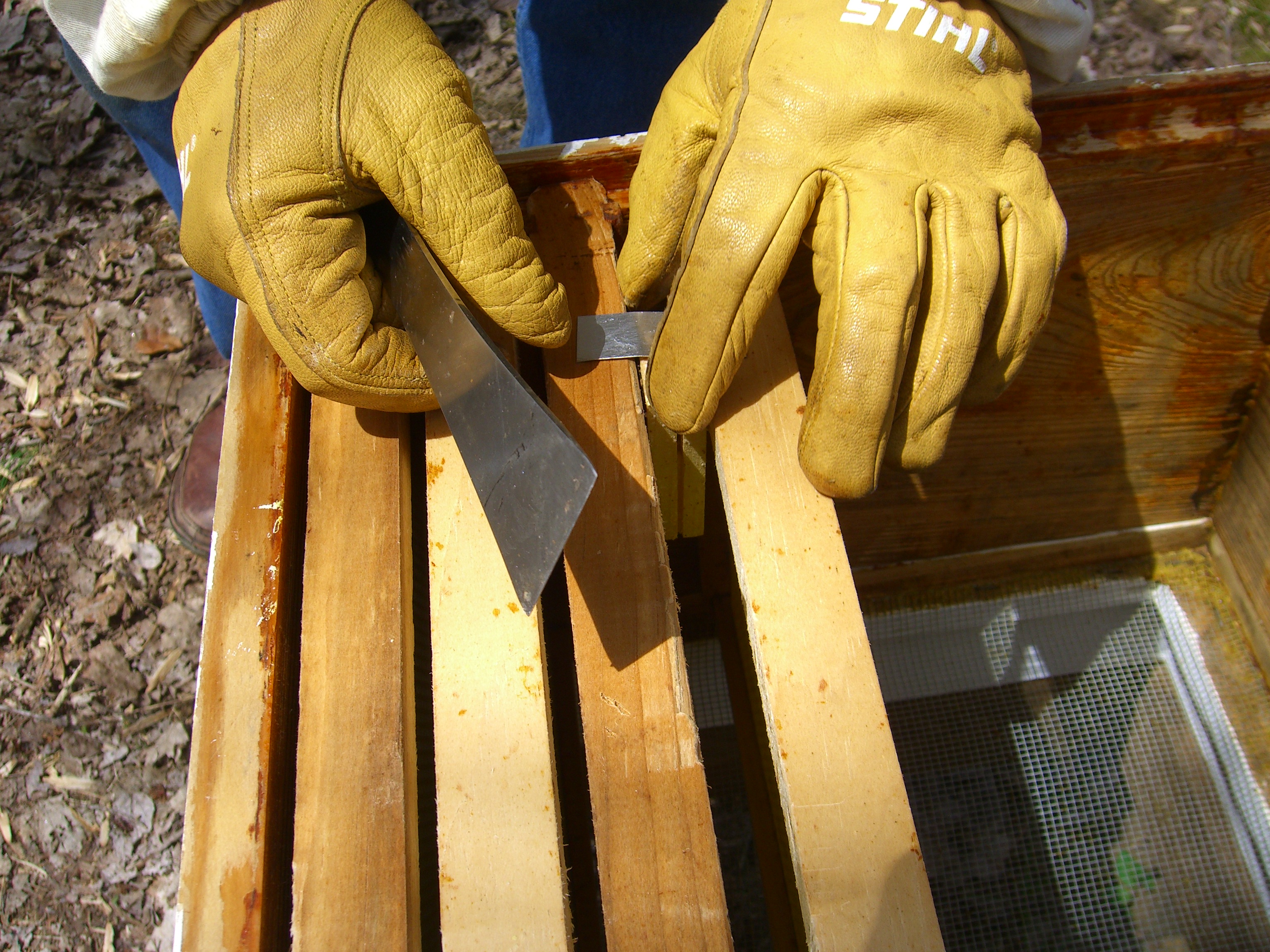 Mr. Beekeeper ordered four pounds of Russians bees. He is given four pounds of Italian bees. It was too cold down in Georgia. No Russians are ready. Are you kidding me? They’re Russian. Do they need little balaclavas to keep them warm? The BeeMan thinks the Italian bees are more aggressive and prone to robbing other hives. Still, we accept the bees and bring them home to join all the Russian bees in the yard. Let’s hope they can peacefully co-exist.